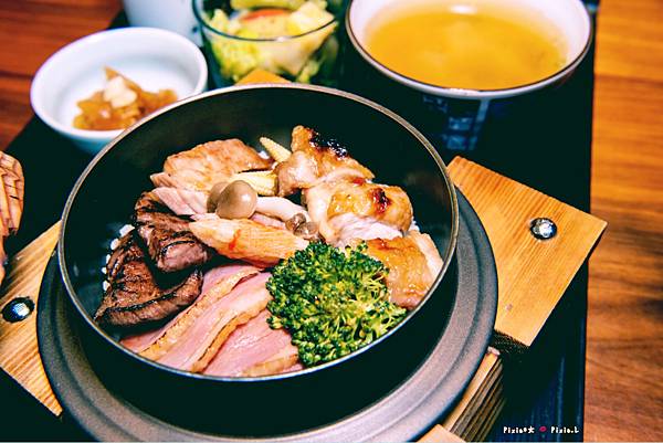 肉類的種類含: 牛板腱、煙燻鴨、松阪豬肉、照燒雞